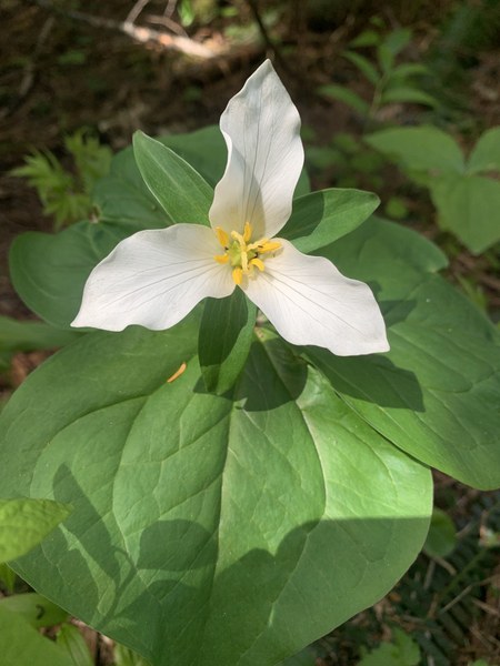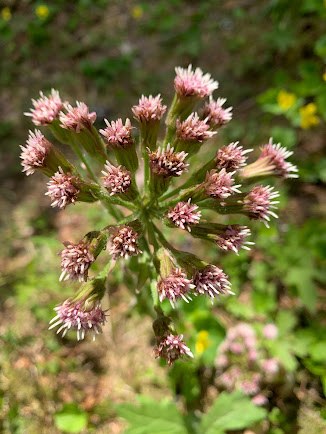 We started off trail, following FS 4096, quickly realizing our mistake we headed up to regain with the trail. The actual trail entrance is about 50 ft before the end of the road and marked with orange flags. The lower trail is overall easy to follow. We did some unnecessary bushwacking through slide alder, again regaining the trail relatively quickly. The woods were colorful with trillium, paintbrush and butterbur. At 3,500 ft the trail turns up, with various highs and lows of pink flags. This portion is steep and mostly easy to follow.