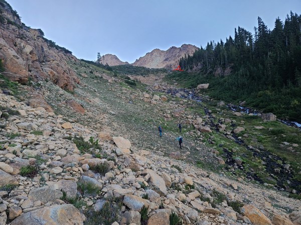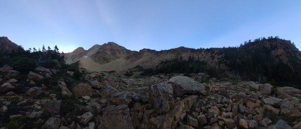 This is about where we decided to leave the ridge and head down the scree and talus to the campsites which can save some time.