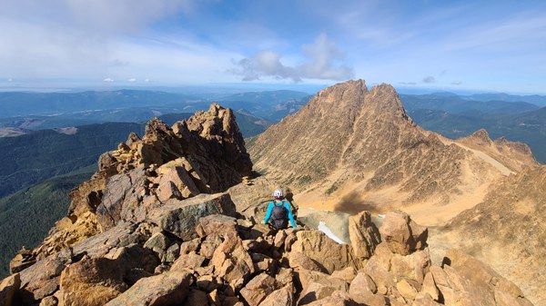 Although considered a climb, the route can easily be completed without a rope. Super fun for those who are comfortable with lots of class 3 and occasional class 4 moves and much exposure in some areas.