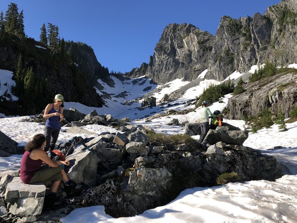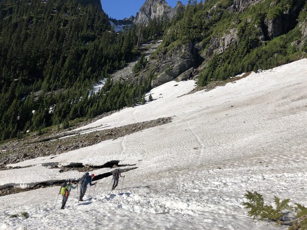 ~9 miles 3,300 feet 10:46:29 Snow firm in the morning but soft in afternoon. Watch out for post holes and snow bridges.