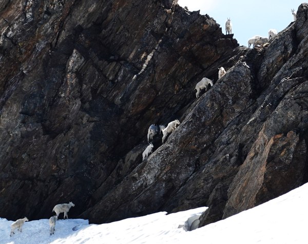 On the way back, the highlight was a huge herd of goats that were hanging out along the top of the glacier. They scrambled up onto the ridge, with the crossing guard goats keeping a close eye on traffic.