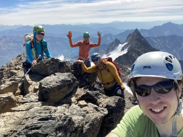 Once we arrived at the summit block, we left our glacier gear and started scrambling straight up the eastern edge of the south face. That turned out to be not the right move, as the terrain at the ridge top was way more exposed than seemed necessary.