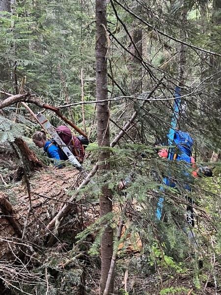Our party of 6 took off from the N. Fork Sauk River TH at 7:30 and despite the blowdowns and creek crossings made good time to the Mackinaw Shelter site 5 miles in before turning uphill for the never ending switch backs to converge with the PCT.
