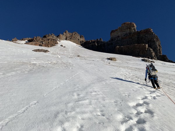 Heading up the snowfield