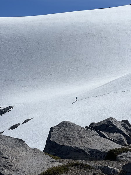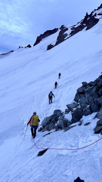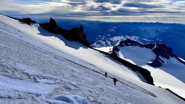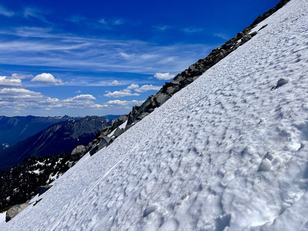 - We also observed a 2-3 crevasses that are beginning to open on the way/up down the very steep slopes and steered away as far as we could from them. I let the ranger know and she made note of it to share with future parties.
