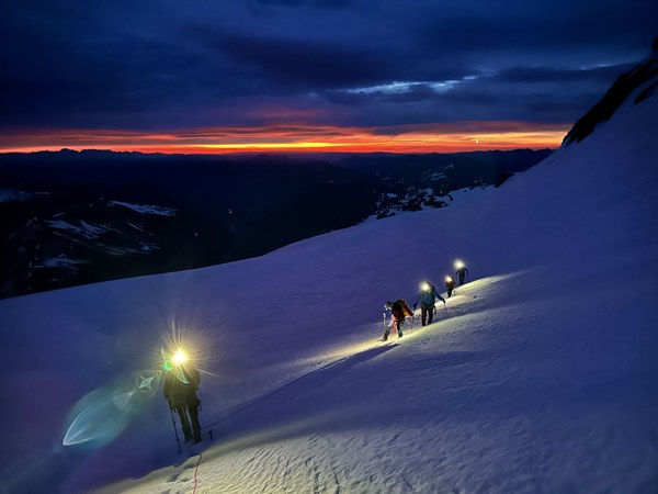 Day 2 - Alpine start on Saturday with headlights at 1:40 am and two rope teams.