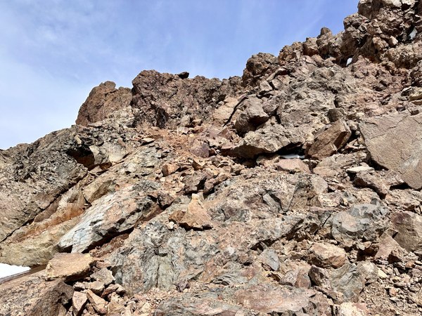 - While going up the steep slopes of the east face below the summit we saw some rocks on the snow that had fallen at other prior days.