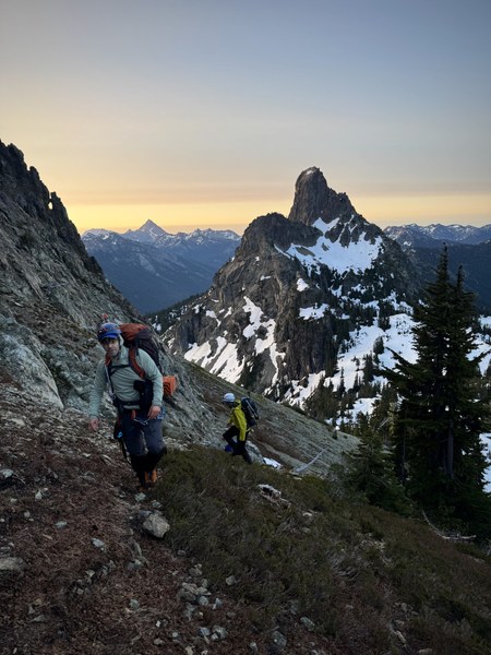 - There was a snow step at the top of the hogsback. We used a standing carabiner ice axe belay to protect it.