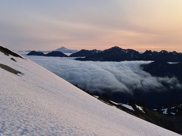 This was a two-day climb of Mt Daniel ascending via the Lynch Glacier and descending the scramble route. Many thanks to Mountaineers climb leaders David Johnson for his trip report, whose suggested deviations we found to be very helpful, and Ian Lauder for his useful tracks!