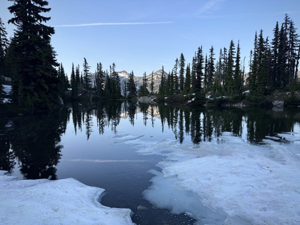 We met at Martin P&R at 8 am on Saturday to carpool to the TH. The road in was very good, except for the Scatter Creek crossing. We made it through with two trucks and Subaru Crosstrek. We were on the trail at around 12:15 pm and made it to the lake at 2.75 miles in for our first break in about 1h20m. There's a bathroom relatively close to the lake.