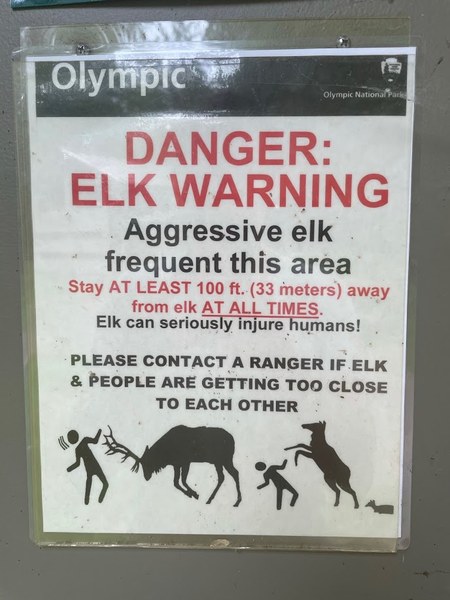 We left camp around 5:45 AM and reached the parking lot by noon. Along the way we noticed that the streams were quite a bit higher than they were on the way up. Close to the visitors center we saw a whole bunch of female elks. We admired them from a distance (there were many signs showing elk boxing humans in the parking lot).