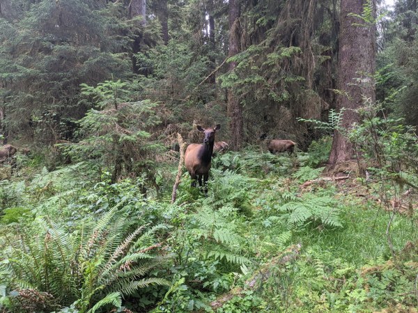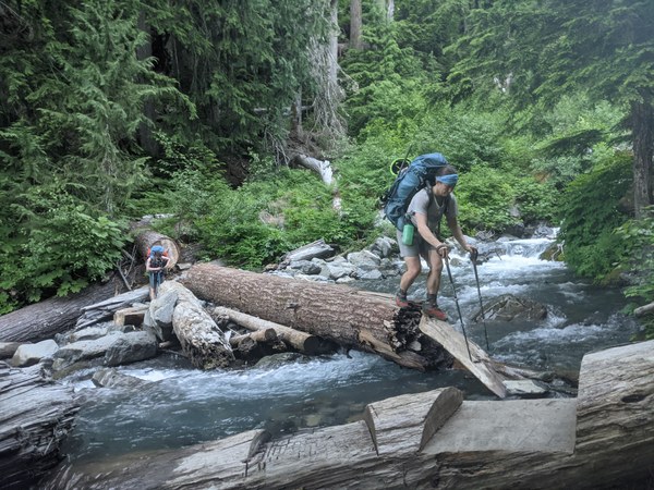 The gorgeous old growth trees provided shade, but the heat still slowed us down. Luckily, there were ample opportunities to refill water from streams leading to the Hoh River. Biting flies and mosquitoes were a bit of a nuisance. There were several stream crossings that required balancing on logs or rocks.