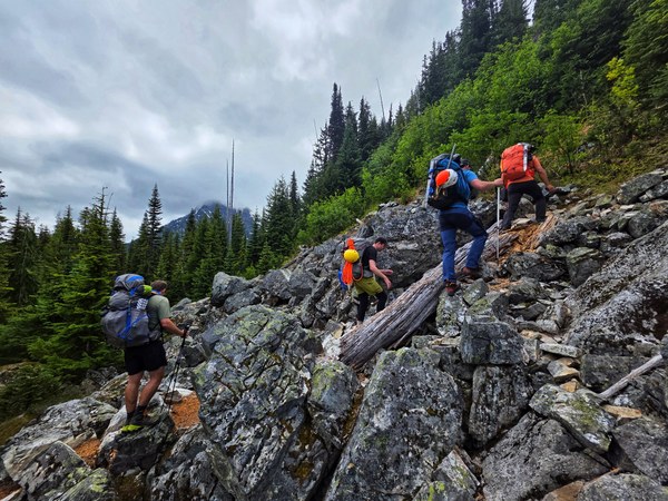 - Climber's trail after you pass Pyramid Lake is easy to follow but relentless. Previous trip reports call this a bushwhack but the Clark/Luahna trail was much more of a bushwhack than this. Bugs were equally relentless within the treeline.
