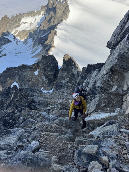 The group made short work of the scramble down. We roped back up and crossed the Neve Glacier back to camp. The group noted how much larger the crevasses had grown from when we crosse them earlier in the morning. We packed up camp and made the long trek back to the cars. We had planned to try for Neve Peak if we had time and energy, but the clouds on approach day prevented that from happening. Regardless, a spectacular climb with a wonderful group.