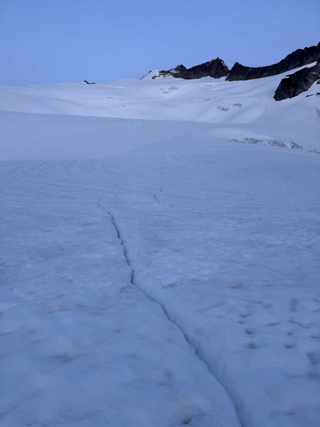 - Crevasses beginning to open up on the Neve Glacier, largest one we crossed over was several inches wide.