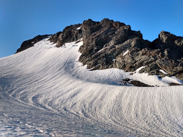 Glacier was in good condition, nothing of note. Took our rope off at High Pass and got ready to head back. Traverse back from High Pass to Lone Tree Pass was shaded so despite warm ambient temperatures, the snow wasn't too shabby on the boot pack and made for an easy time back.