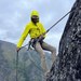 Gaining the upper final approach we were distracted by the abundance of huckleberries, after tossing back a handful of these tasty treats we geared up with harnesses, helmets and rope. Splitting into pairs we climbed the first pitch, then moved over the scramble route to a left leading ramp up to the top of a notch. dropping down the notch to the base of the 2nd pitch to start the final pitch to the top.