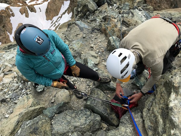The route was in great shape. There are rappel anchors at the top of P1 and P2, with slung boulders. P3 and P4 have good looking cordalette at the bolted anchors. We did a double rope rap from the summit to avoid the party of 3 breaking P4 into 2 pitches and allowing them full access to the bolts at P3. They offered to mind our ropes to avoid the rope eating crack just below the summit anchor. Our basic student added some webbing to the boulder at the top of P2, reinforcing some faded webbing. Thanks, Marty!