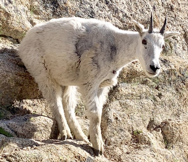 From there it is a smooth, glorious set of rappels from one shiny station to the next til you're back at the packs (and the many friendly mountain goats and their babies). We read of a way to double-rope some of rappel, but we chose single 60m raps to each station since it was our first time on that route. Account for the extra time of extra rappels.
