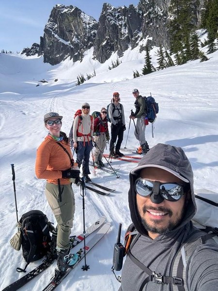 We put our ski boots back on and retraced our steps back to our skis. The snow was still quite supportable which we were pleasantly surprised by given the temps. We started our descent a little after 4pm. The snow was hot, grabby mush, but good turns were had and I think we were all excited to be skinning and headed back to the car after a long 10 hours. I kicked off one small wet loose on the descent back into lower great scott bowl which was the only avy movement we saw during the day. It was mostly smooth sailing back to the trailhead, minus the dirty grabby snow on the out track. We finally got back to the cars at 5pm, debriefed, and celebrated our great day!