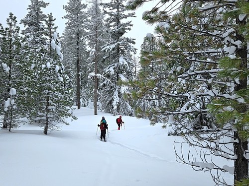 On the trail by 9:30am. Worked hard due to trailbreaking the entire day in deep, untracked snow which was sometimes hip deep (YouTube video). Great fun. No precipitation despite weather forecasts to the contrary. Arrival temperatures mid-20s and no wind. Clearly the snow genie granted our wishes today. No view at Diamond Head viewpoint due to low clouds. Paused for lunch break on the Diamond Head loop. But the sun and blue sky briefly blossomed about 1pm. We did not make it to the Porky Basin viewpoint given our slow pace and turn around time chosen to get us over Snoqualmie Pass before 4pm (which is the end time for afternoon tickets at The Summit). Made it to the large open junction area of Hurley Creek Rd and FS 9711-112, the later was the route to Porky Basin. But was not meant for today. Always nice to save something for the next trip! Total trip time 4.5 hr and average pace 1.1 mph 😅