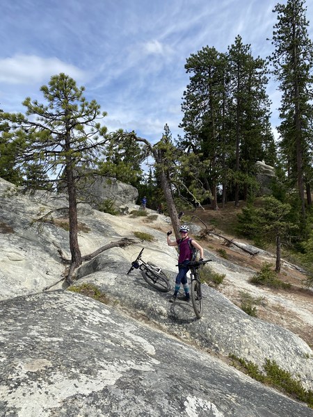 The next day, we woke early and were riding by 7:42am so that we could beat the rain coming in. Our up hill track we took Carlson Tie to the new track which almost connected us back up to the top of upper rat pac. We had to push our bikes up about 200 feet to connect into TCF and pushed a little bit up that hill. Once we connected back into Upper rat pac, we took Paul’s back to lunch slab and rode beer can all the way down to the cars.