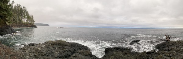 Energized by the cinnamon rolls and generosity, we pedaled the final four miles to the Salt Creek Recreation Area, arriving just as our daylight was waning. We were nearly alone at the huge campground, and we settled into two adjacent campsites with views of the Strait of Juan de Fuca. The earlier cold temperatures we experienced on the Adventure Trail were replaced with moderate temps in the 40s.