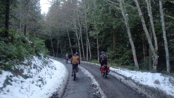 A cold-weather bikepack loop that followed the flowing singletrack trail of the Olympic Adventure Route to Joyce-Piedmont Road, then to Salt Creek Recreation Area. Following an overnight camp, a return to the trailhead via the singletrack of the Bunker Ridge Trail and scenic rural roads.