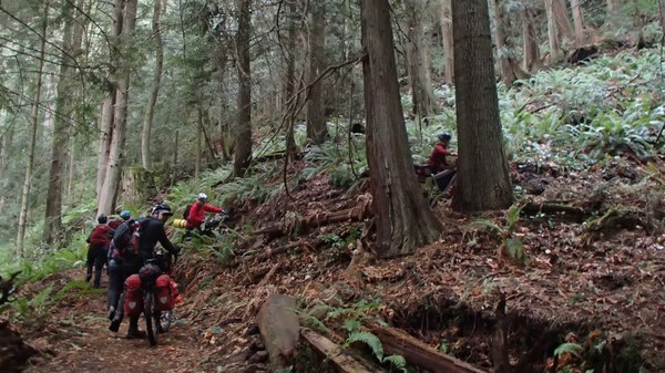 As the trail began its climb to higher elevation, the fully loaded bikes became heavier and a mix of hike-a-bike and singletrack riding became our new normal.