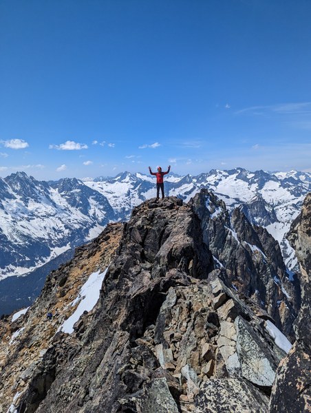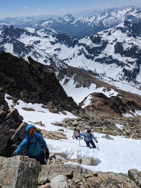 A plan for a longer ski tour turned into a scramble of Black Peak with skis for transport on a gorgeous Spring day.