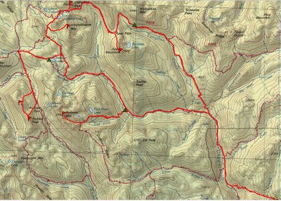 Trails were in great shape, downed trees cut out, probably because this is a horse trail. Boy Scout cabin at the Tungtsen Mine was open and could be used as a shelter (we did not use). We did a clockwise loop on the trail.