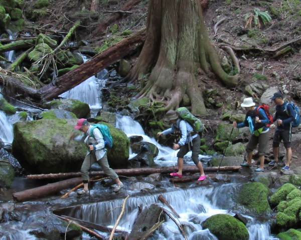 The trail is in good condition except for some blowdown. The stream was runnig just high enough that we changed to water shoes.