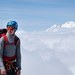 Chris downclimbs from our progress up the North Buttress Couloir.