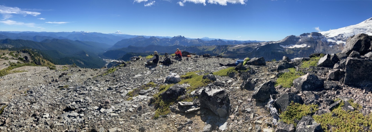 A strenuous but gorgeous ‘out and back’ scramble to vast meadows and breathtaking vistas in the SE portion of Mount Rainier National Park. Lots of wildlife with bugling elk, soaring hawks, and a passel of ptarmigans.