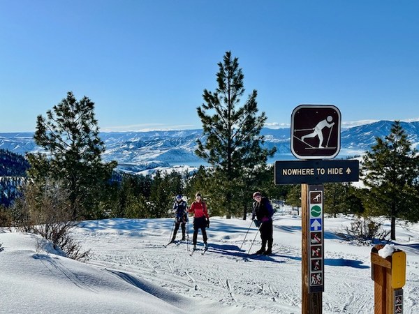 Fantastic cross-country ski trip to Echo Ridge in Lake Chelan area. Blue skies, well-groomed trails and views galore!