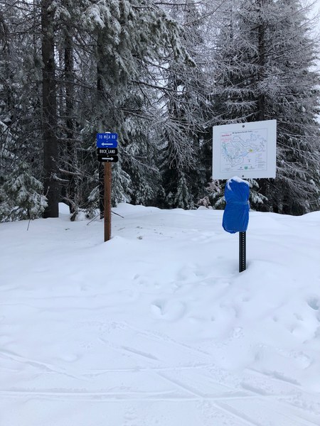 Mt. Spokane Nordic Ski area is large with 11 ski junctions and about 60 km worth of trails. Each ski junction has 3-4 trail choices leaving from it, as well as a large ski map so one always knows where they are. Throughout the ski park one will also find emergency kit tarps attached to poles.