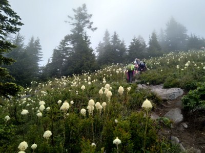 We had Bandera mostly to ourselves on this weekday morning. No views whatsoever, but we enjoyed the beautiful forest and the wildflowers that blanketed the mountain as soon as you got out in the open. The beargrass is at its prime, and lupine and paintbrush are also abundant. The trail is very pleasant and well-maintained: our group of eight went up and down in five hours, with ample breaks. Tiny patches of snow on the north side of the ridge, but none on the trail.
