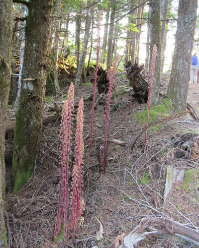 Warm and pleasant evening for a hike. Woodland Pinedrops and Foxglove along the trail. Sadly the birdhouses are disappearing from the Birdhouse trail. I hadn't seen advance warning that exit 38 would be closed eastbound. The detour was well marked. Everyone arrived at the trailhead and the evening went smoothly from there.