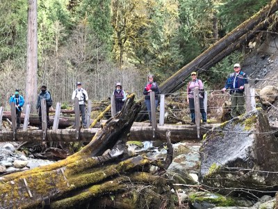 Weather was mild with some sun breaks, but not enough to clear for the great mountain views we knew were there.  Fantastic hikers along with great attitudes and appreciation for what Mother Nature can do and the beauty she provides.  An incredible old growth cedar along the trail for you to admire. Downed Tree_2570.jpg