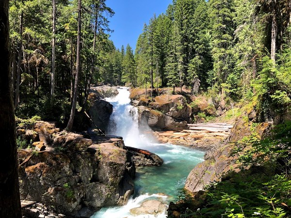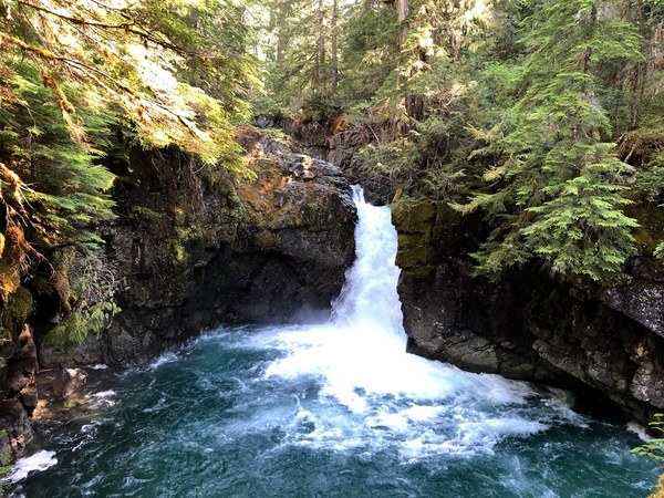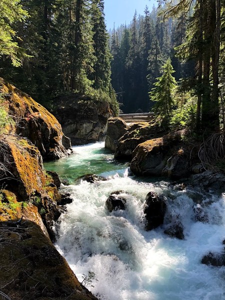 At first we weren't too impressed by Ohanapecosh Falls because one look up stream and there were just a few little rapids.
