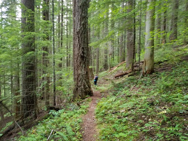 The trail's overgrown in many spots the first mile or so. Some overgrown sections had nettles mixed it which was hard to avoid. Some parts were also muddy and had running water. Once past this, the trail was in great condition as we continued through the trees. The many switchbacks made the elevation gain fairly easy. At about 4 miles we reached Fred Bugner Camp where some filtered water.