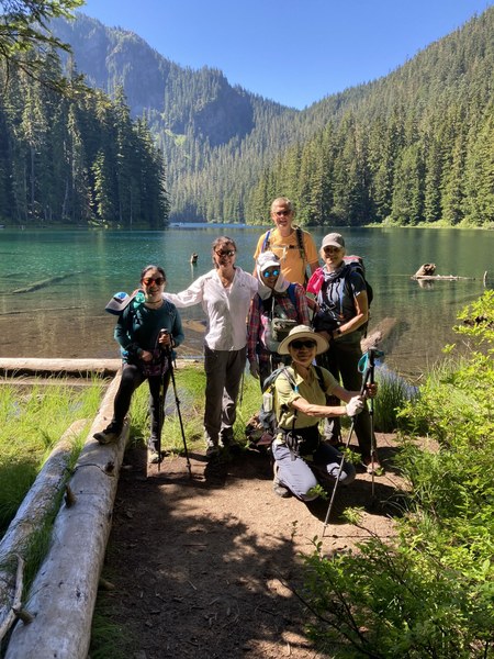 During the whole day we saw only two other hikers, one camper at the lake, and very few bugs. Things were dry and wildflowers were not at their prime, but there were lupine, twin flowers, pasque flowers, paintbrush, beargrass, and several others that I don't have a name for. Our time was a few minutes over 7 hours/13 miles rt and 2,750' elevation gain. In a nutshell, a most enjoyable hike with wonderful companions!