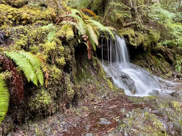 We were the first to arrive at the trailhead on this Monday morning about 7:45 for an 8:30 start time; roads were snow free and paved the entire way. By the time the participants for this hike arrived only one other person came and began his own hike. We noted a lot of trillium in bloom along the trail as well as stream violets. The stand of Fawn Lilly near the trailhead are up but probably 2 to 3 days from blooming. I've seen orchids on the trail in the past and looked for them but didn't see any on this hike - I suspect its still a little early for them. The many mosses and lichens along the trail are still lush and green. The 7 mile hike took us about 4 hours car to car; the hikers new to this trail noted how "easy" the 1300 feet of elevation gain seemed due to the many switchbacks which made the elevation gain pretty gradual.