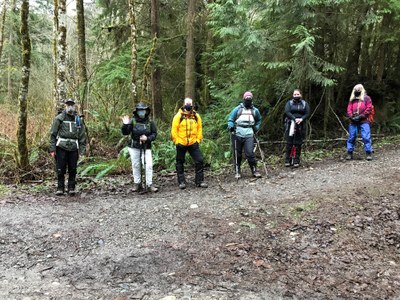 Started out with rain in the parking lot and ended with rain as well, kept most of the other visitors at bay. Hike was wonderful with multiple forest species. Great meeting new hiking friends.