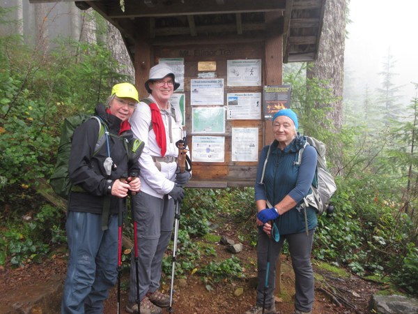 The trail from the lower trail head to the upper junction is in good condition. We hiked in clouds and dampness the entire way, but most of it was from trip drips in the forest. Once out of the woods, hardly any wind, although chilly. Windy at the summit. Nice close-up views of clouds.