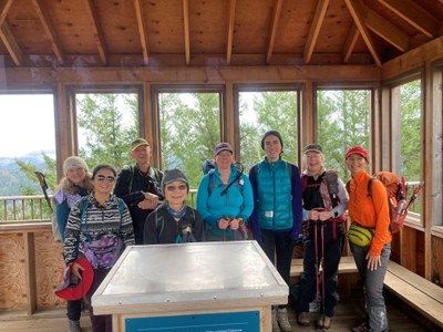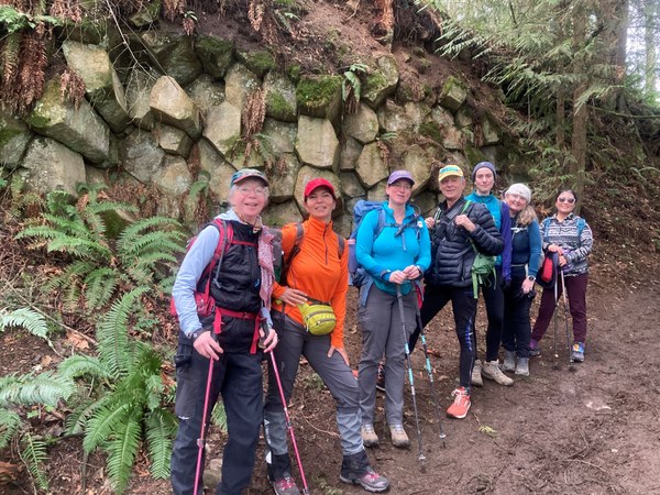 The south trailhead parking area is quite large and there are clean, well kept restrooms. As planned, we found our way from the south up to the new hiker-friendly lookout, then descended the north side by way of the steeper Cal Magnusson trail, then hiked up that trail to the lookout again and had lunch. We descended on an even steeper in places trail on the south side (we did not go near the Goat trail - I've done it and it's somewhat scrambly). Parking areas on both sides were pretty crowded, but the trails did not seem very crowded. We joked that maybe they were all on the Goat trail! It was chilly and cloudy all day with a brief sprinkle of snow on our second summit. A fun hike on turf that was new to some of my adventurous group! Total 5.5 miles and 2,150' gain over four hours, well worth it!