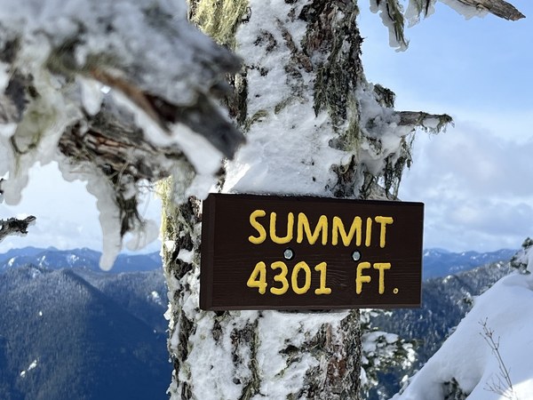 After a long stretch of wet days in the region we were greeted with perfect weather. The last mile before the summit became a winter wonderland. The views were mesmerizing as we stood above clouds in awe of a panoramic view of snowy peaks, Lake Cushman, Hood Canal, and Mt. Rainier in the distance.