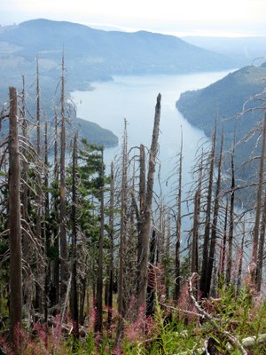 Today's trip was originally a hike/scramble on Snoqualmie Mtn. I changed the destination because of thunderstorm predictions for the Cascades. The day began with a drive in the rain and a wet drippy hike. But the rain had stopped by the time we reached Horse Camp, and the sky began to brighten and clear gradually when we reached the summit and headed down via the lollipop loop. Total time on the peak was 5 hrs 15 minutes, including 45 minutes eating lunch and enjoying the summit. We then walked down to Lake Cushman before driving home. The water was gorgeous and tempting, lots of people playing in it and taking advantage of the sunshine. Overall it was a very nice, fun hike with two wonderful companions!