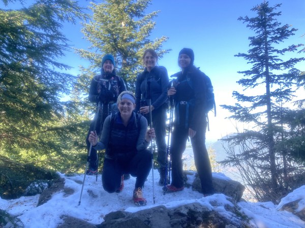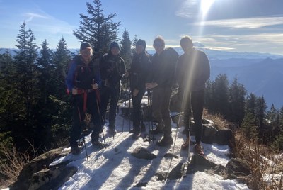A cold wind was blowing at the parking lot in the morning, but magically disappeared when we entered the trees along the trail. The air was still cold, but lack of wind and warm sunshine just below the summit made a nice lunch spot. Microspikes were needed on the upper trail, it would've been pretty sketchy along some stretches without them. Very few other hikers along the way, a few more coming up as we headed down. Six hours round trip including a half hour enjoying the views up top, slightly under 8.5 miles and just about 3,200' gain. A nice day out!