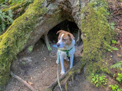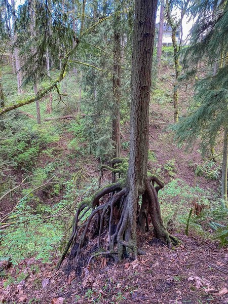 My dog and I hiked 2.6 miles along the park perimeter, 420' elevation down St. Edward State Park's north ridge and regained it up the south ridge, then around east trails to loop back to the car. Don't forget your Discover Pass!